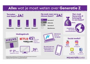 Uit recent onderzoek van Monsterboard onder ruim 5000 Europese werknemers komt naar voren dat meer dan 75 procent van de jongeren tevreden is met zijn of haar huidige baan. De welbekende ‘Generatie Z’ mag zich daarmee de meest tevreden generatie op de arbeidsmarkt noemen. Echter geeft meer dan de helft van deze jongeren aan dat ze ook zoeken naar een andere baan. Oftewel: Generatie Z beweegt volop op de arbeidsmarkt en grijpt nieuwe kansen aan. Vier tips over hoe deze jongeren het beste zijn te benaderen tijdens het wervingsproces.